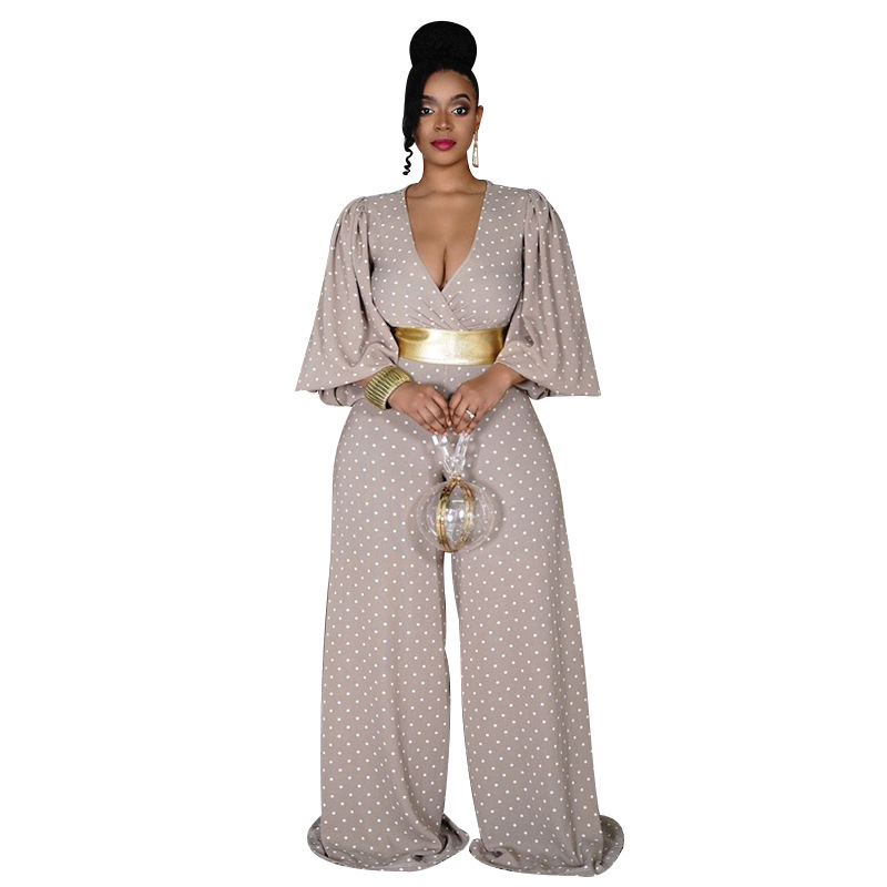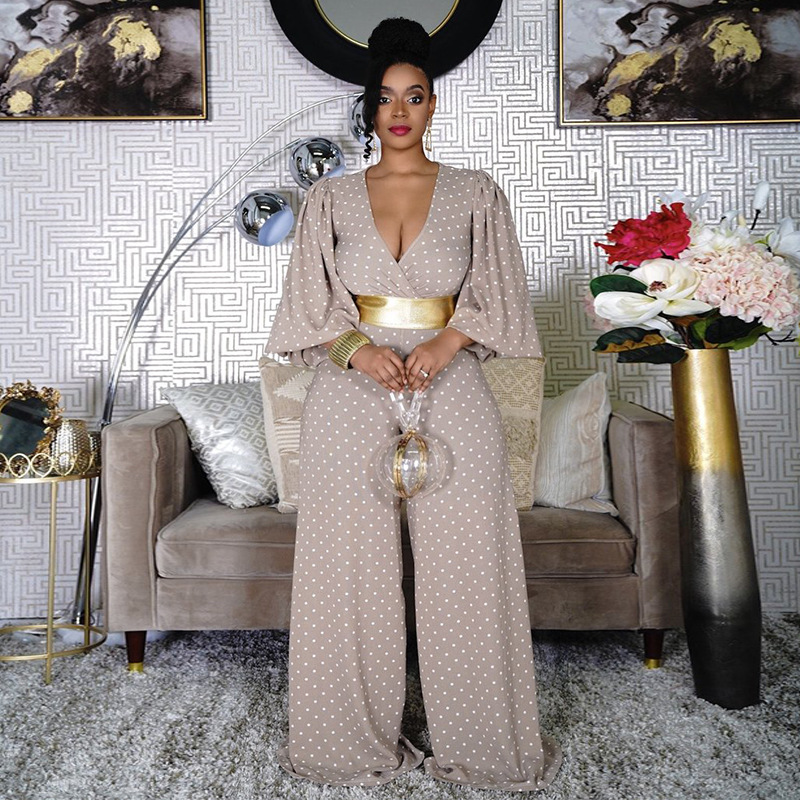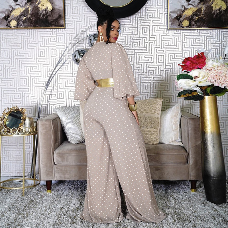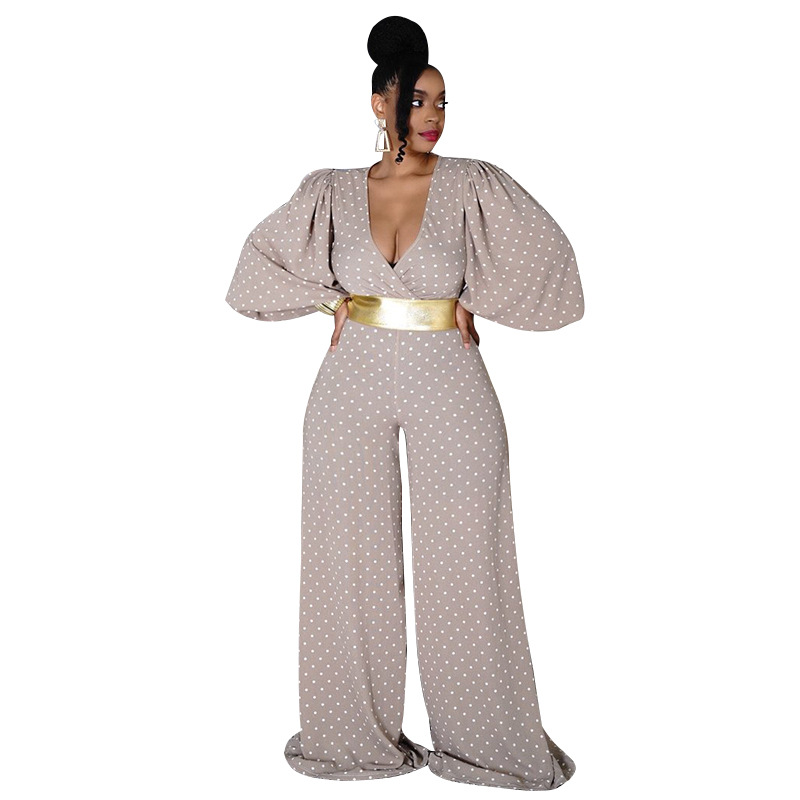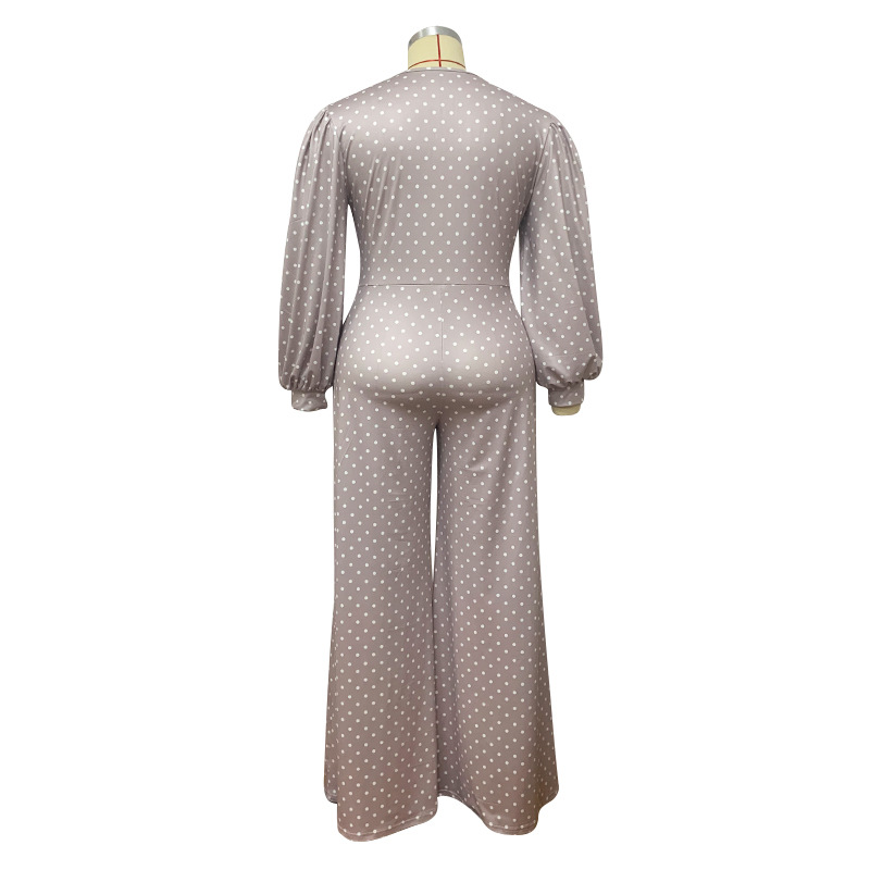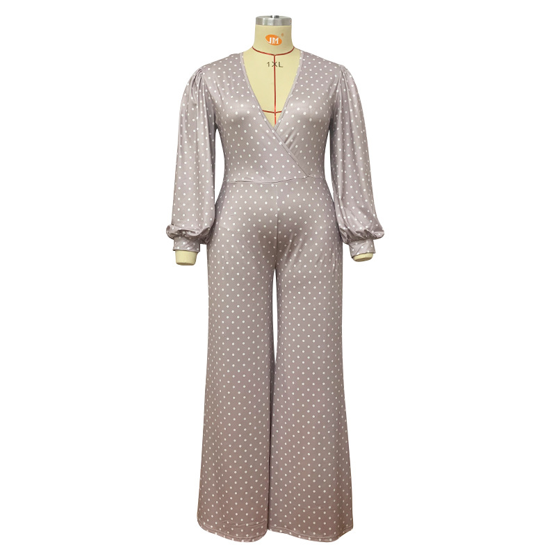 Plus Size V-neck Women Loose Wide Leg Jumpsuit Printed Waist-Controlled Trousers